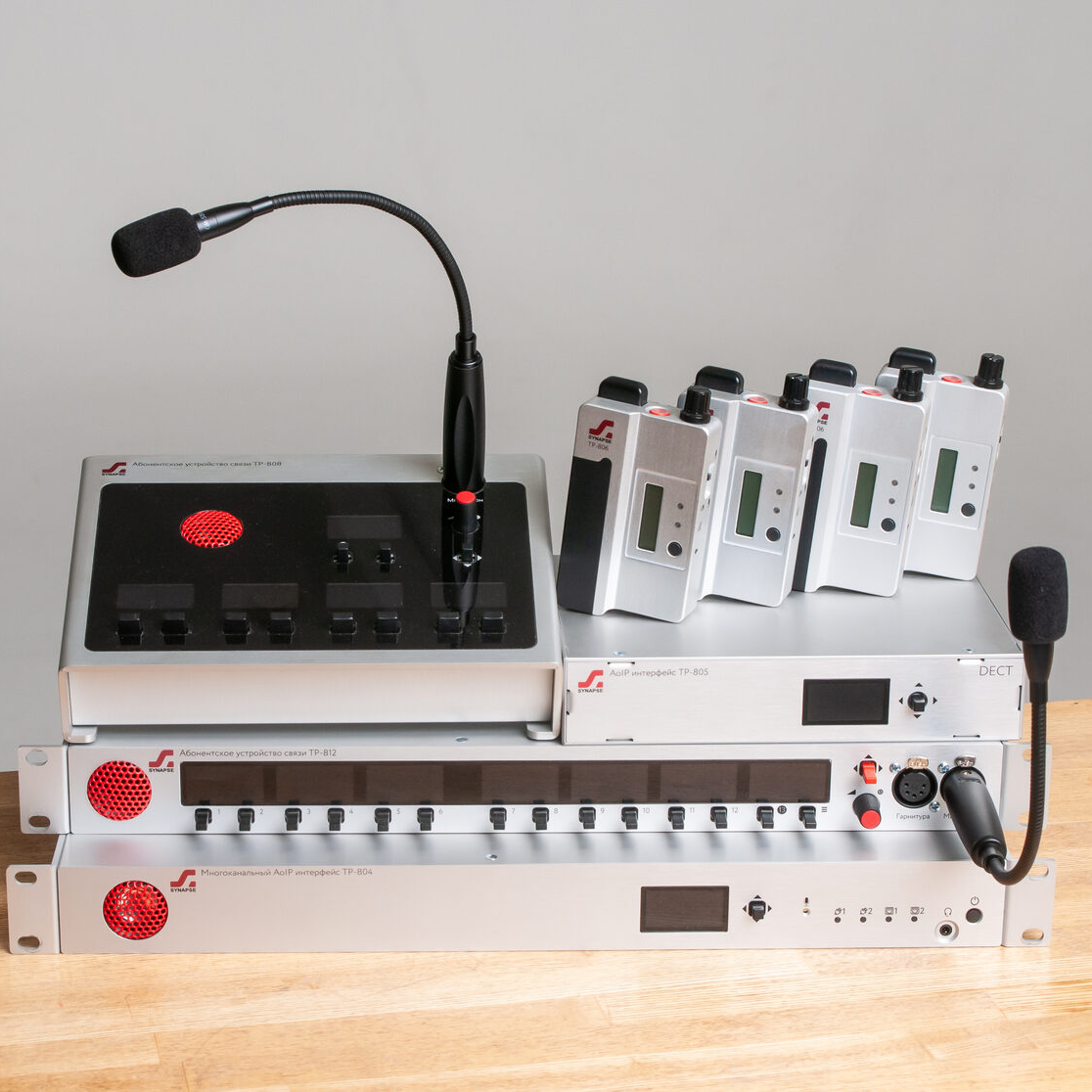 настольные и стоечные абонентские переговорные панели, носимые DECT-устройства (белтпаки), SIP-телефоны, компьютеры и смартфоны с установленным абонентским приложением, а также абонентские панели других производителей, подключенные в систему по четырехпроводной линии.